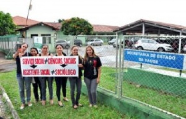 Profissionais da rea de assistente social realizaram uma manifestao ontem pela manh em frente Sesau (Secretaria Estadual de Sade), para protestar contra a aprovao de dois socilogos para o cargo de Assistente Social. O trabalho deles, conforme o edital, desenvolver atividades na rea mdica da sade.