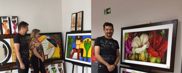 Utilizando a t�cnica de �leo e acr�lico sobre telas, as obras retratam temas do cotidiano nordestino, marina, floral, mandalas de espelhos, africanas, al�m do estilo abstrato e inspira��es em Romero Brito.